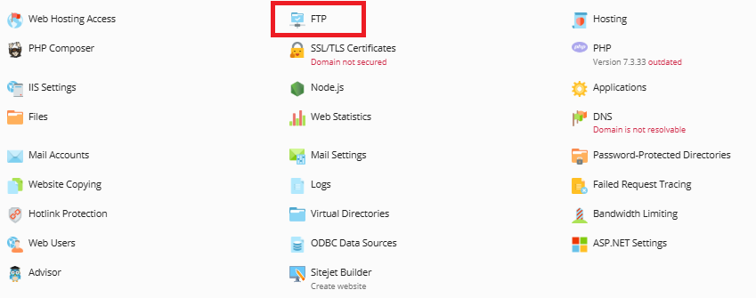 2) Para cambiar la contraseña de FTP en Plesk, no confundir con la contraseña de acceso al panel de control Plesk, hay que irse hasta la página principal de Plesk y hacer click en “Acceso FTP”.