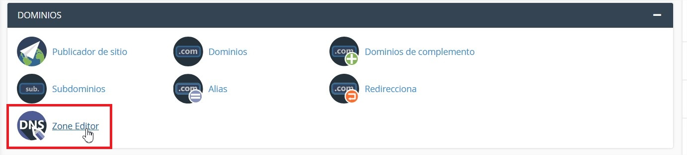 Paso 2: En su Cpanel deberá ingresar en “Zone Editor”