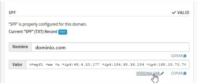 Se ubican sobre la opción de SPF y ca clic en “Personalizar”