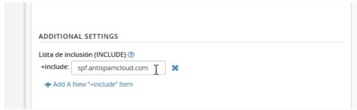 Ahora agregaremos a antispamcloud, debemos ingresar “spf.antispamcloud.com” y presionar “Enter”. Con esto se guardarán los cambios.