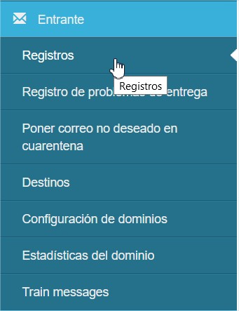 Para visualizar Log de que está escaneando SpamExperts, va a revisar dentro del Panel de Administración desde la opción "Registros", ya sea en el Escaneo Entrante o Saliente: