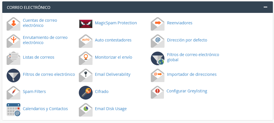 1. Ingresar al cPanel y ubique la opción Correo Electrónico > MagicSpam Protection