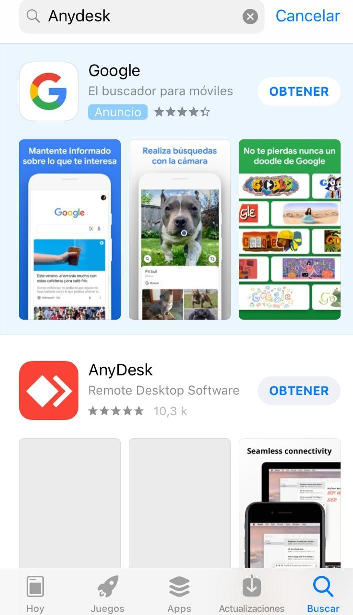 2.- Busque AnyDesk entre las aplicaciones disponibles y haga clic en el botón Obtener.