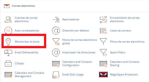 2. Una vez dentro del cPanel, deberá ir a: «Correo Electrónico» > «Monitorizar el envío»