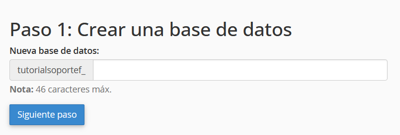 3. Asigne un nombre para su base de datos, y pulse «Siguiente paso»