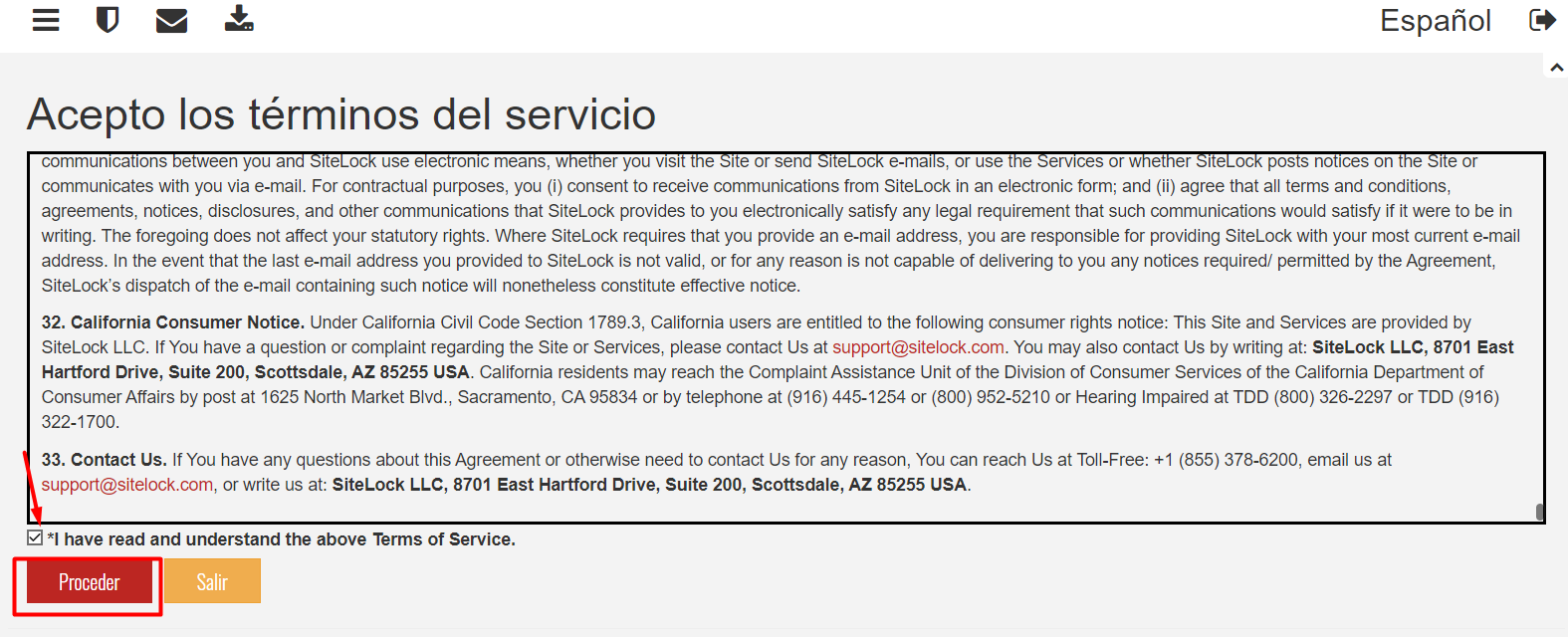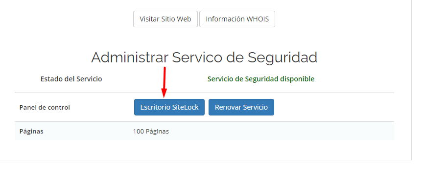 3.- Luego ingresamos a escritorio Sitelock para acceder al panel de control