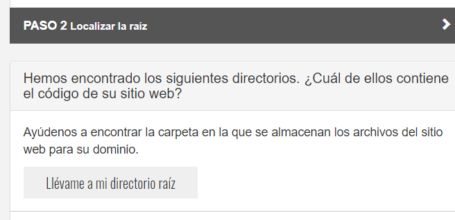 7.- Una vez validad la información nos solicitará el directorio en el cual está alojada la web para que pueda realizar el escaneo de los archivos, seleccionamos el directorio y damos clic en "eso es todo"
