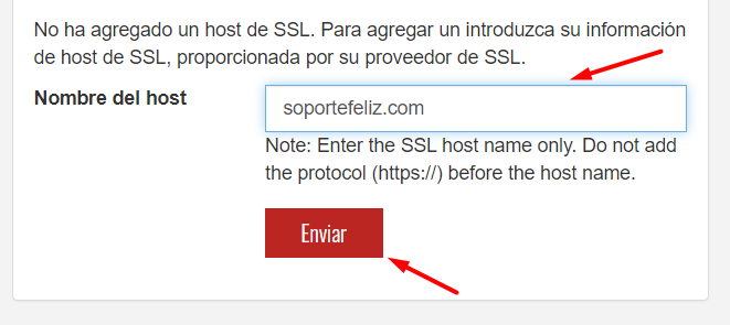 12.- Agregamos el nombre de nuestro dominio y presionamos sobre enviar para la solicitud, con esto concluimos la configuración de nuestro producto.
